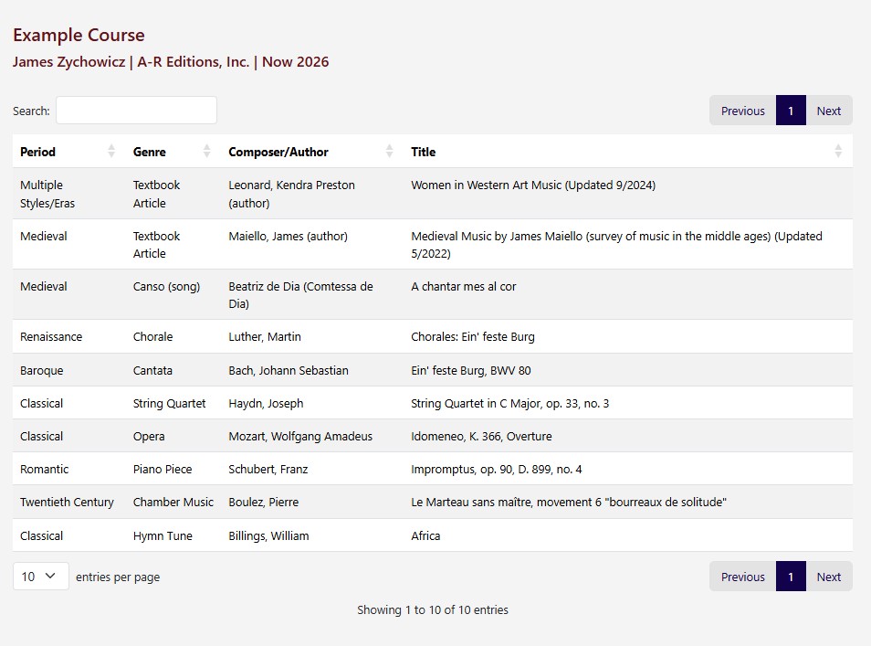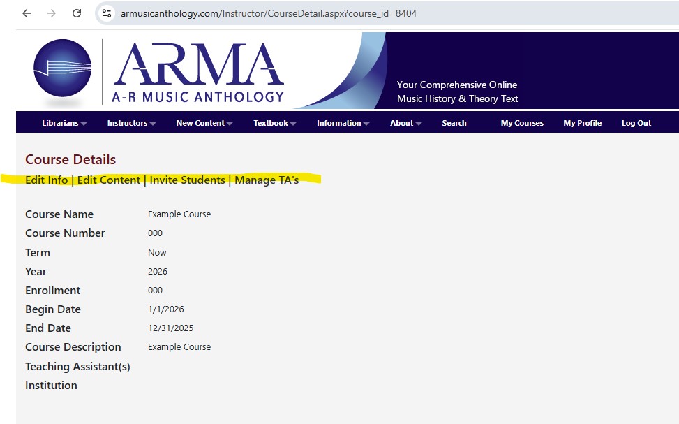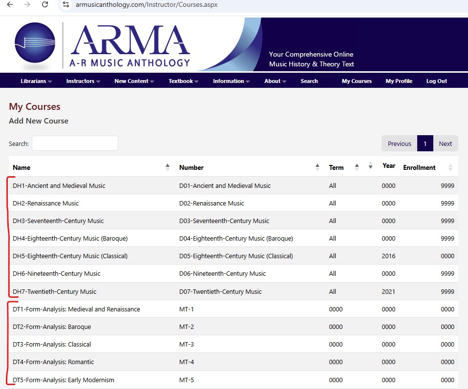 ARMA’s pre-set courses are models. The “default” courses in ARMA include seven for music history and five for music theory. You can review the courses as model for yours or even adopt them for your students. It’s your choice to use the pre-set course packs or to make your custom courses right away.
